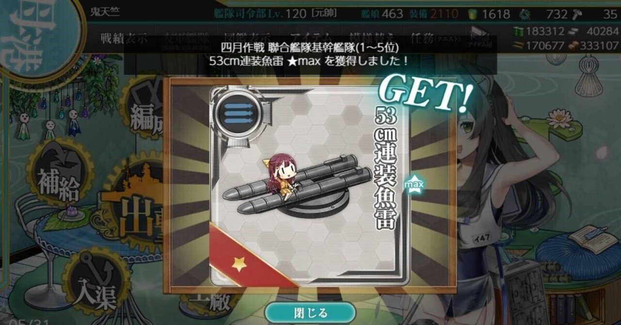 片っ端から戦果任務を消化して100位以内に入れそうだからと通常海域の3-4を中心にひたすら戦果稼ぎ。